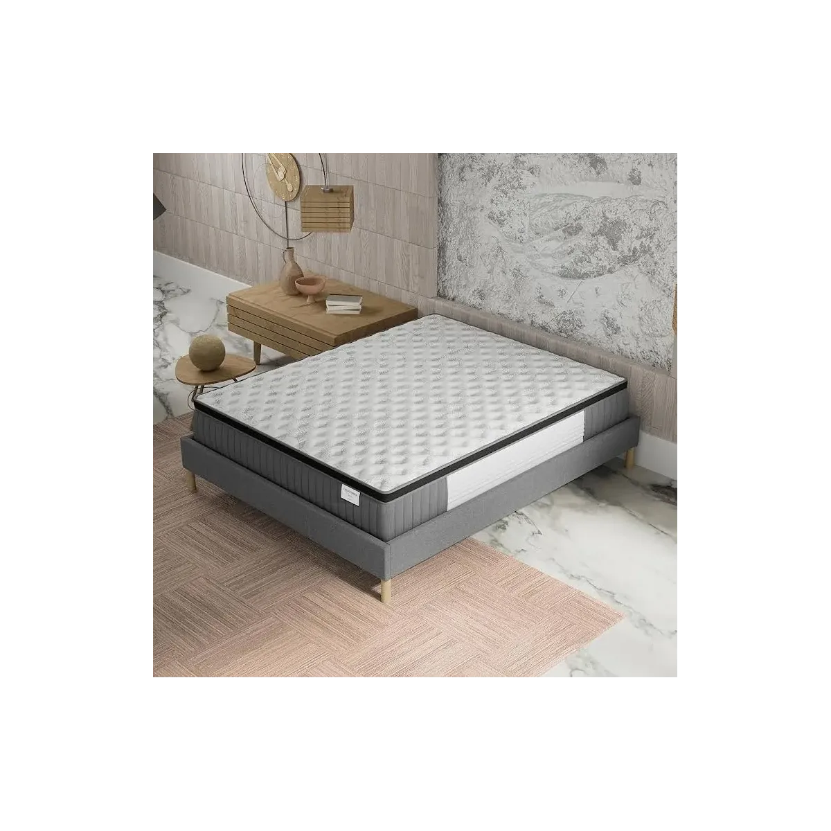 The mattress also benefits from an anti-dust mite, antibacterial, and hypoallergenic treatment, ideal for sensitive individuals who wish to sleep in a healthy environment.